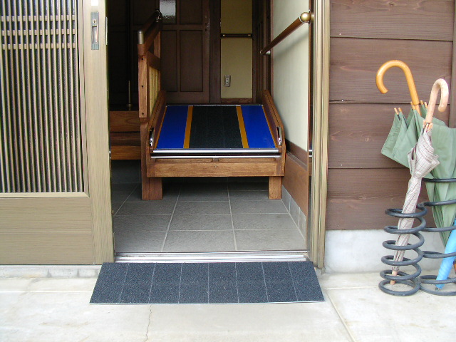 作品名 『家具調伸縮スロープ』玄関に設置するスロープをご注文頂きました。 作品のポイント お客様のご要望を基に、企画・設計・製作しました。 玄関外側の段差解消には、鋼板でスロープを製作しました。 |